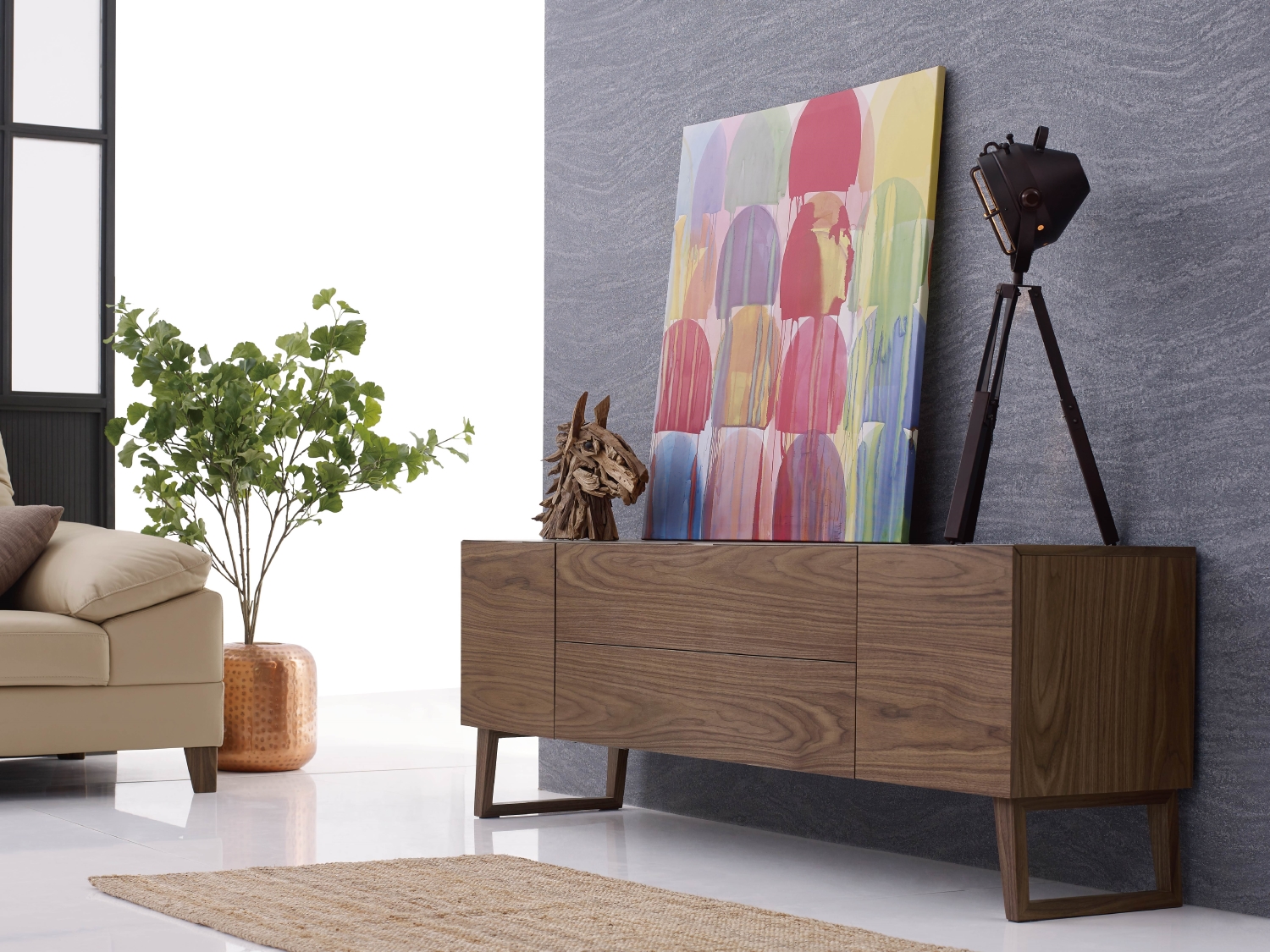 This TV unit strikes a clean silhouette that’s in line with modern aesthetics while offering plenty of storage.