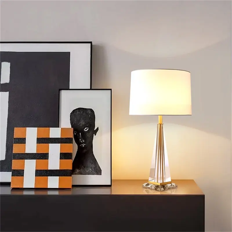 Brass Modern Crystal LED Fabric Desk Light
